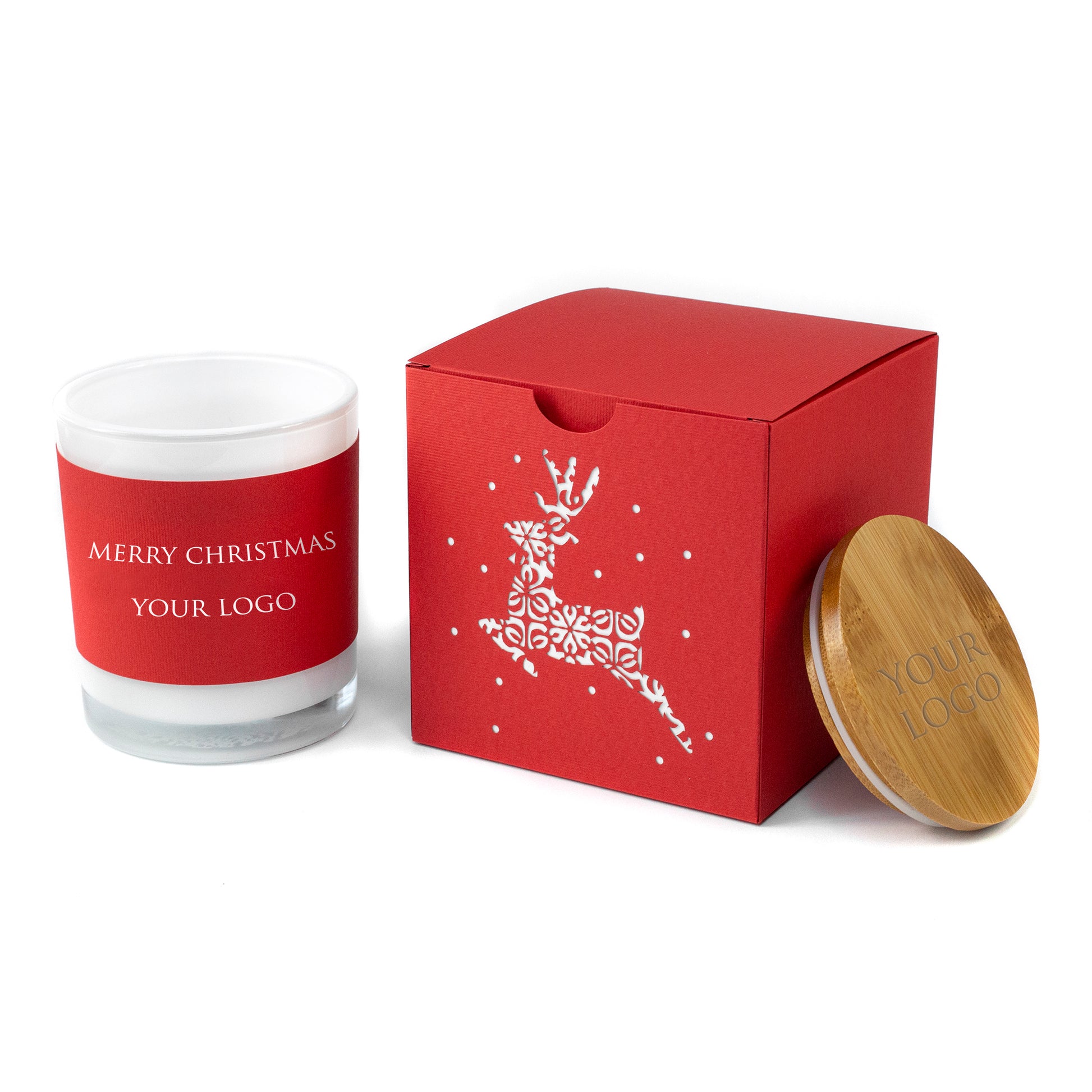 Corporate Gift With Laser Cut Raindeer Motif: Custom Soy Candle and Box