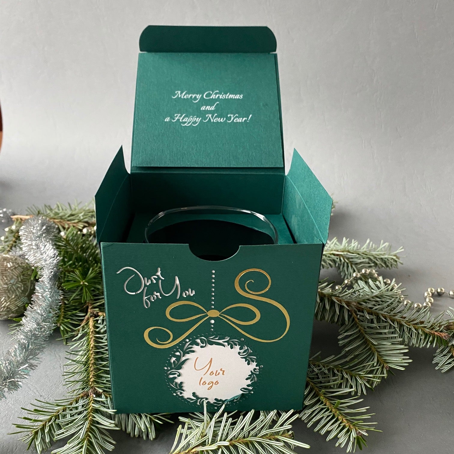 Elegant Corporate Gifts for Employees: Boxed Branded Glasses Laser Cut Bauble
